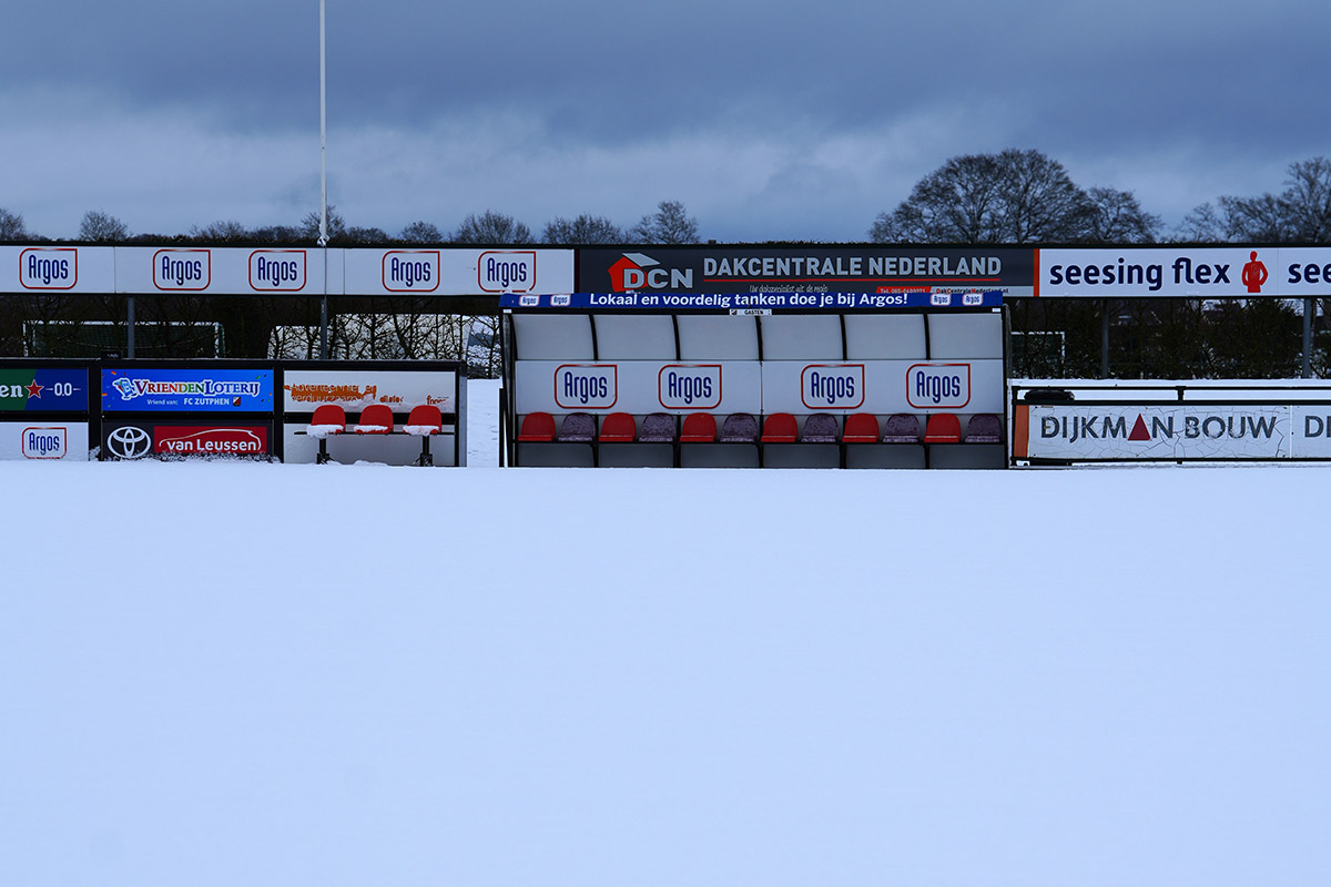 Het hoofdveld op Sportpark ’t Meijerink is volledig bedekt met een dikke laag sneeuw. Hierdoor is het momenteel niet mogelijk …