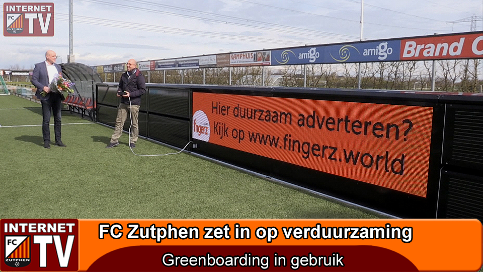 FC Zutphen werkt hard aan verduurzaming. Afgelopen vrijdag werd de greenboarding in gebruik genomen. De boarding zorgt voor zonne-energie en luchtzuivering.
