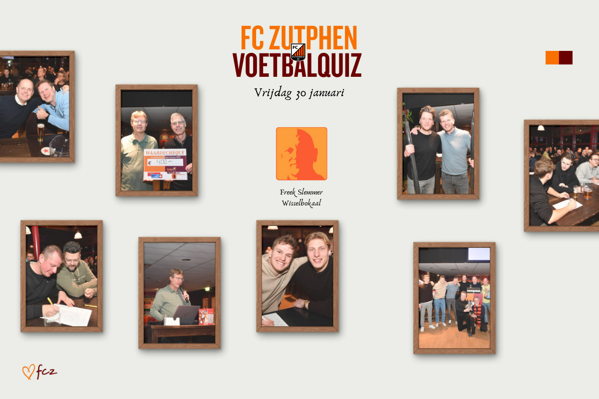 De jaarlijkse voetbalquiz van FC Zutphen vindt dit seizoen plaats op vrijdagavond 30 januari, in het clubhuis en de aanvang is om 20.00 uur. Met wie vorm jij een duo? Aanmelden kan vanaf nu!
