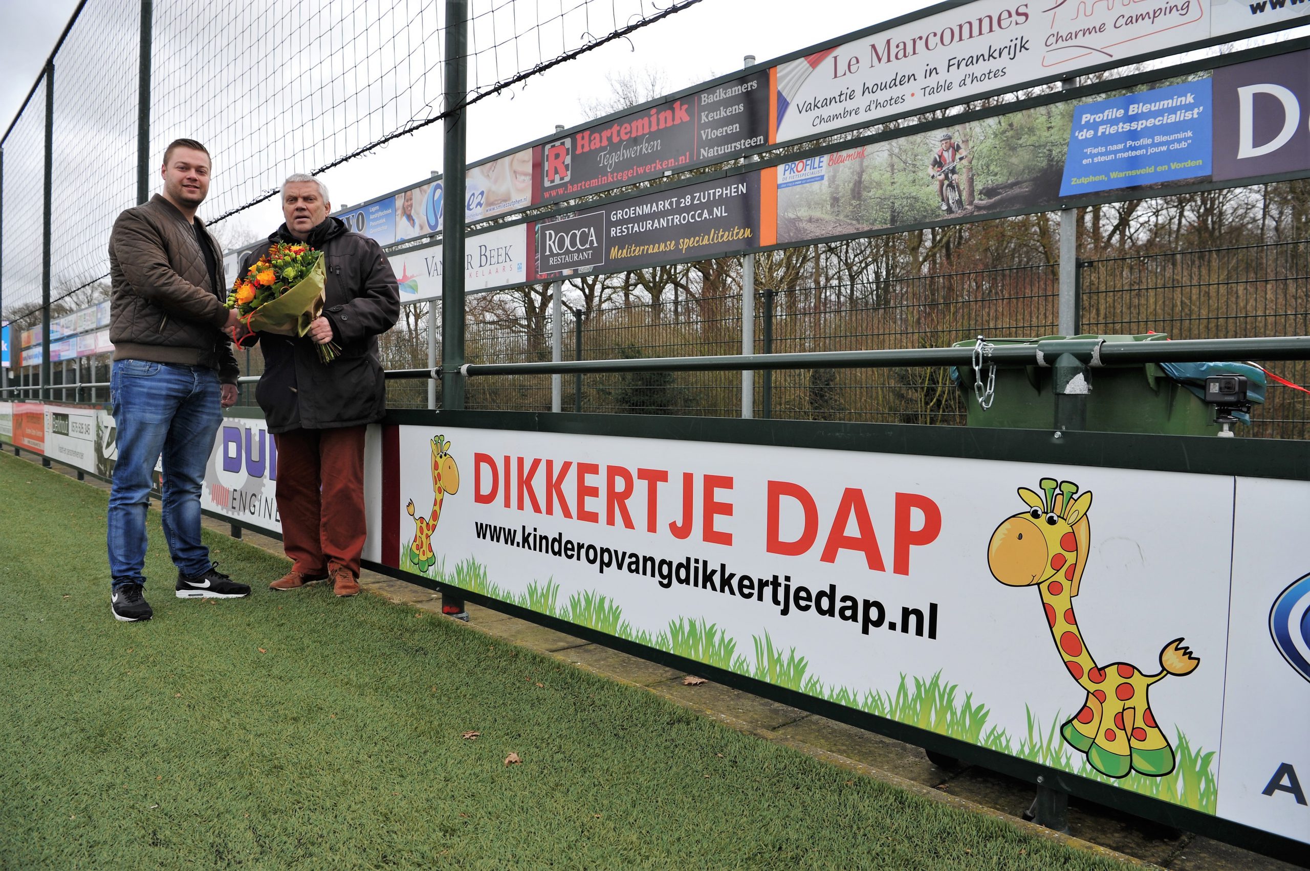 Daan Borgonjen, u weet wel, de leider van Zondag 1 was zaterdag namens Dikkertje Dap aanwezig voor het media moment aangaande sponsoring van een reclamebord. Namens de sponsorcommissie kreeg hij een bos bloemen overhandigd door Henk Wevers die ook nog eens met hem op de foto mocht.