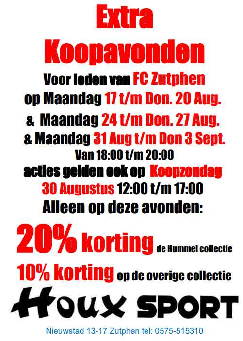 Extra koopavonden met korting bij Houx voor leden FC Zutphen
