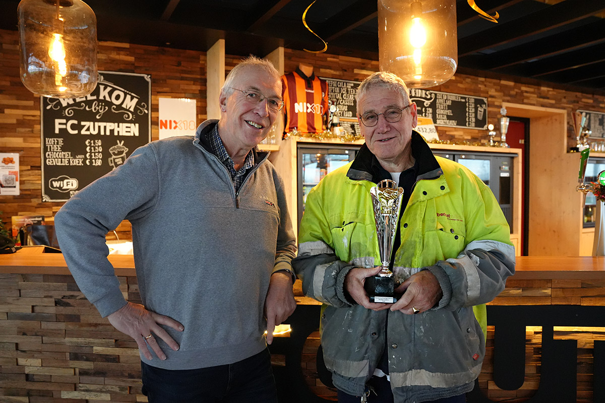 Dik Vosselman is 1 van de genomineerden voor het Zutphens Sport- en Beweeggala. Voor zijn nominatie en als blijk van waardering voor al zijn inzet als vrijwilliger ontving Dik vanmorgen uit handen van voorzitter Gerjan Nijland een beker. De prijs is beschikbaar gesteld door Actief Zutphen, het sportbedrijf van de gemeente Zutphen. Het Zutphen Sport- en Beweeggala vindt op 1 maart 2024 plaats in de Buitensociëteit Hanzehof. Voor allerlei categorieën kunnen de komende periode mensen en teams genomineerd worden.