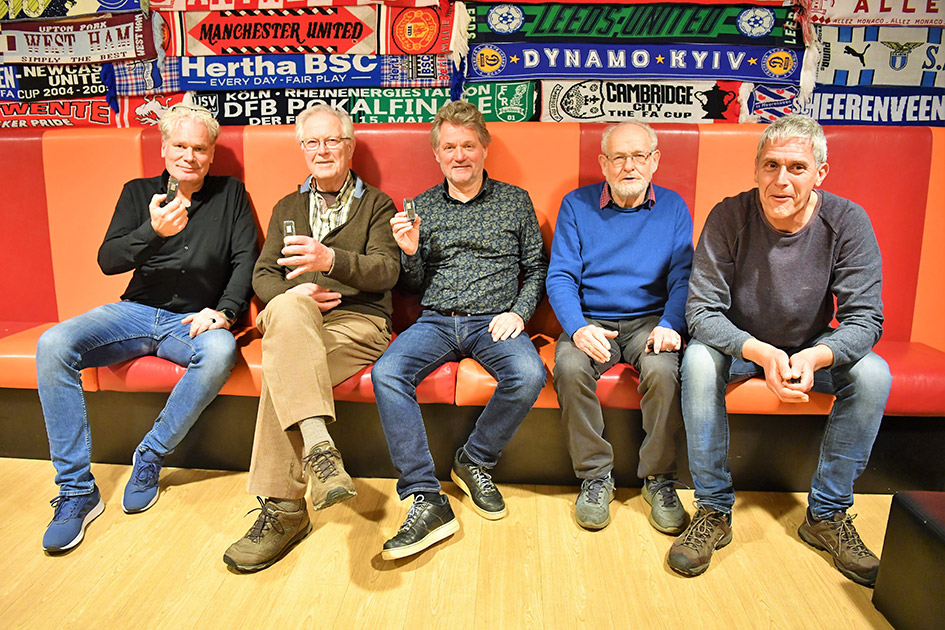 De overhandiging van de speldjes leverde de trotse ontvangers een flink applaus op. Trotse en blije gezichten alom. Voor veel jubilarissen was het ook een mooie gelegenheid om samen met voetbalvrienden te proosten op het nieuwe jaar. En om daarbij terug te blikken met tal van anekdotes op de mooie en lange tijd dat zij al lid zijn bij onze club.