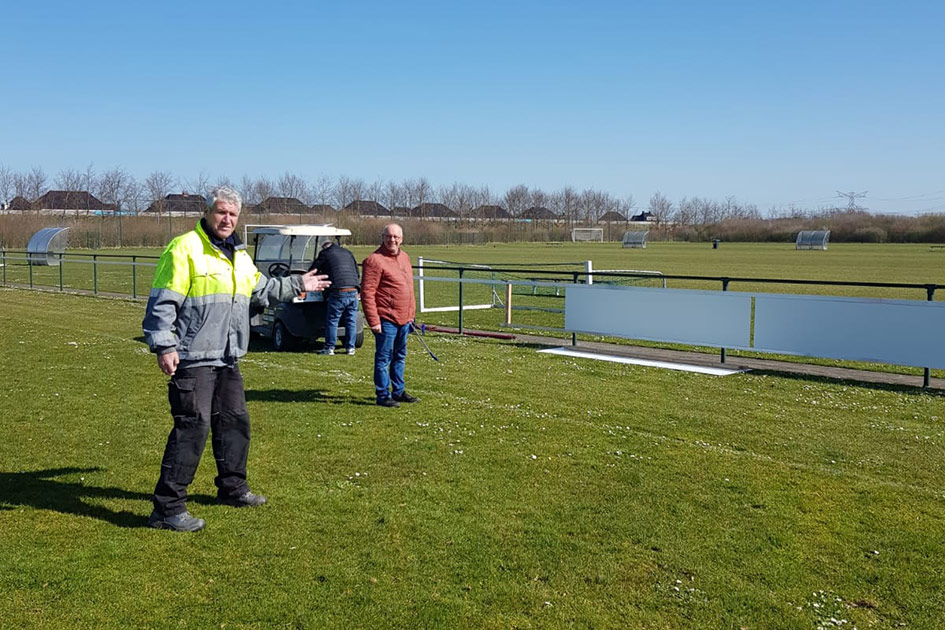 Wethouder Harry Matser bediende vandaag op Sportpark ’t Meijerink de schakelaar van de greenboarding. Daarmee werd de boarding officieel in gebruik genomen. De wethouder sprak