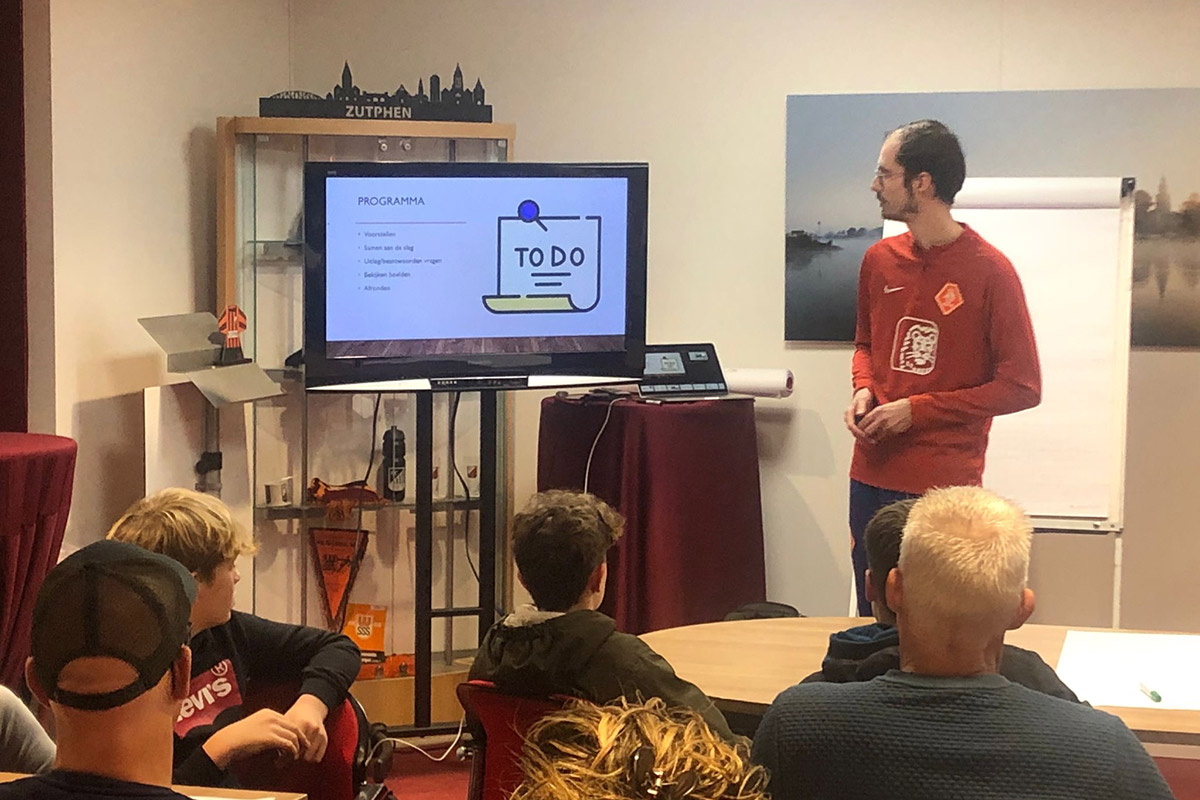 Het werd een leerzame avond voor de aanwezigen. De voetbalspelregels zijn belangrijk voor scheidsrechters. Ken je ze goed, dan kun je makkelijker een beslissing nemen tijdens de wedstrijd. En je kunt bij onduidelijkheid kort toelichten wat de regel is en wat je in het veld hebt waargenomen. Nick Wenneker is een ervaren (assistent)scheidsrechter en bracht namens scheidsrechtersvereniging Zutphen zijn kennis met veel overtuiging en passie over op de groep. Er was volop ruimte voor vragen en voorbeelden vanuit de praktijk. Beelden hielpen daarbij.