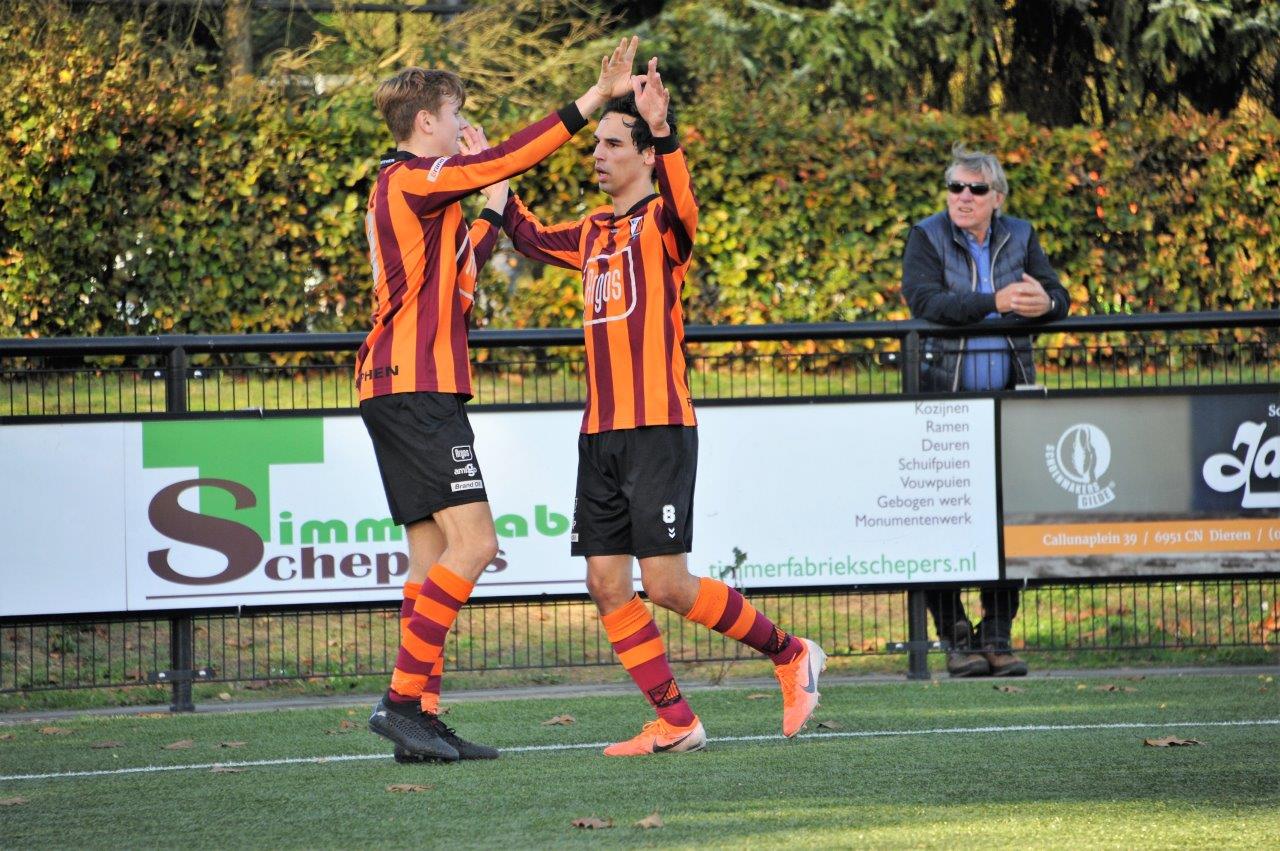 Afgelopen zaterdag won men de lastige uit wedstrijd in Dieren met 3-1. Nu was er eens geen hoofdrol voor de voorhoede en het middenveld, maar met name voor doelman Marijn Sangers. Hij hield de voorsprong, met een paar uitstekende reddingen in de slotfase, vast. Zijn collega Joey Wolsink had in blessuretijd bijna succes, toen hij mee naar voren ging, en bijna de gelijkmaker binnen kopte. Maar het laatste woord was aan Sem Veeger van FC Zutphen, die de beslissende 1-3 binnen schoot. FC Zutphen toonde daarmee aan steeds beter met druk en spanning te kunnen omgaan.