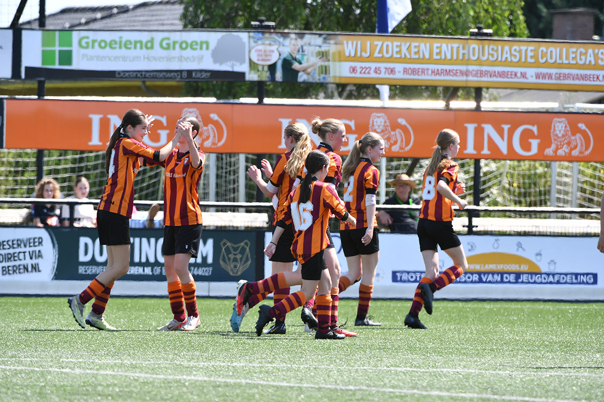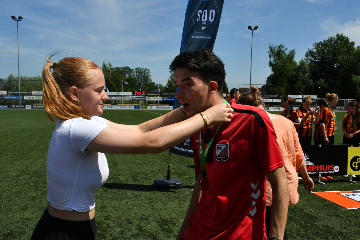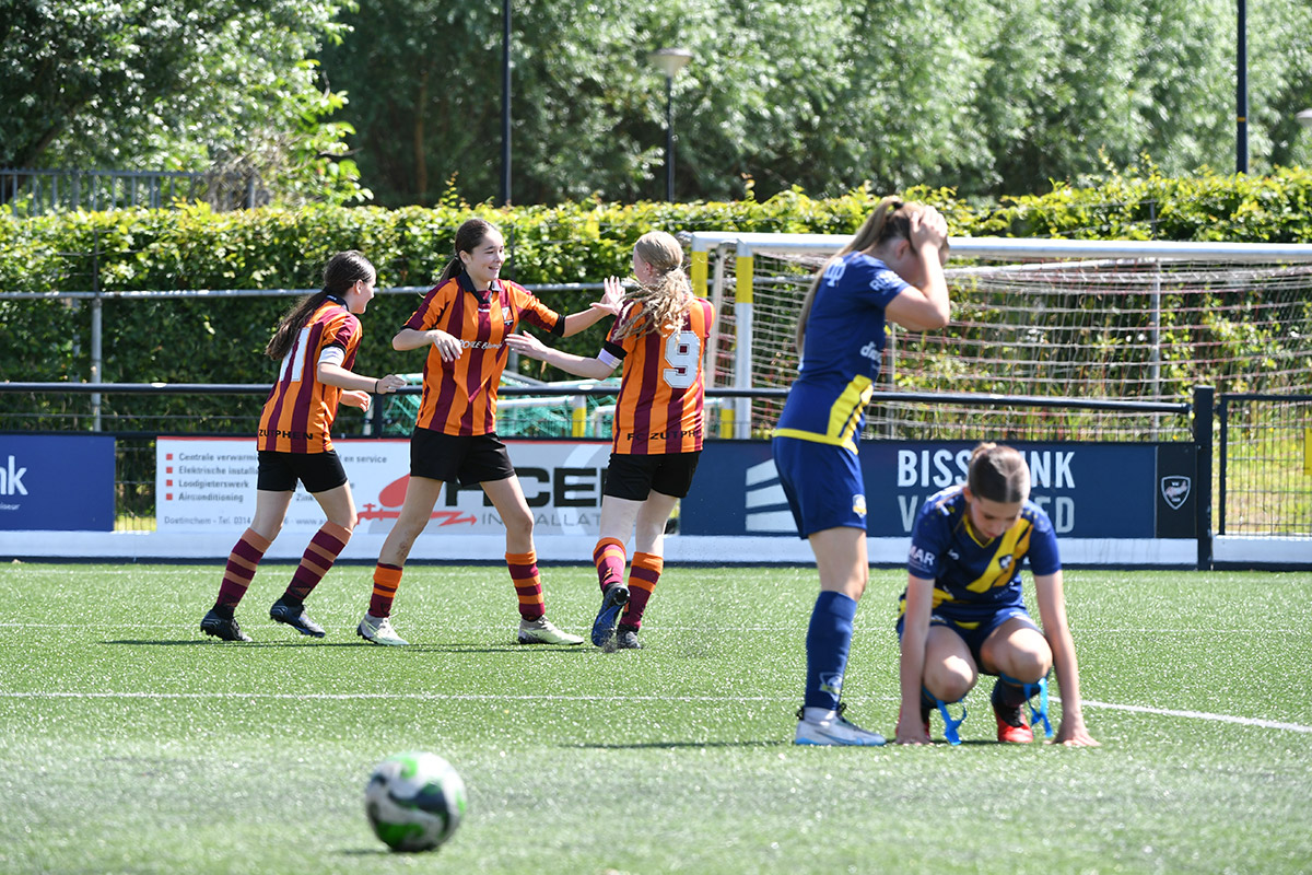 Na een zinderende finale zijn de meiden van FC Zutphen MO15-1 gehuldigd als winnaars van de Achterhoek Cup. Sportpark Dichteren in Doetinchem was zaterdagmiddag het decor van de finale. En het werd een finale die niet snel vergeten wordt. FC Zutphen kwam op een 3-0 voorsprong. En dat was het sein voor tegenstander ZZC ’20 om te beginnen aan een comeback. En dat gebeurde. De wedstrijd eindigde gelijk, waardoor er shoot outs volgden. Dat deed FC Zutphen beter. De felbegeerde beker werd enthousiast in ontvangst genomen en het feest barstte los. Gefeliciteerd MO15-1!