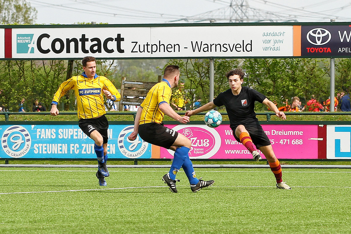FC Zutphen 2 won zaterdagmiddag met 4-0 van DZC ’68 4. FC Zutphen speelde in zwarte shirts. Maar de shirts van tegenstander DZC waren nog veel opvallender. Omdat de bezoekers hun eigen shirts waren vergeten, speelden ze in oude reserveshirts van FC Zutphen. Zodoende speelde DZC alsnog in het geel, maar wel met ‘FC Zutphen’ prominent als sponsor in beeld.