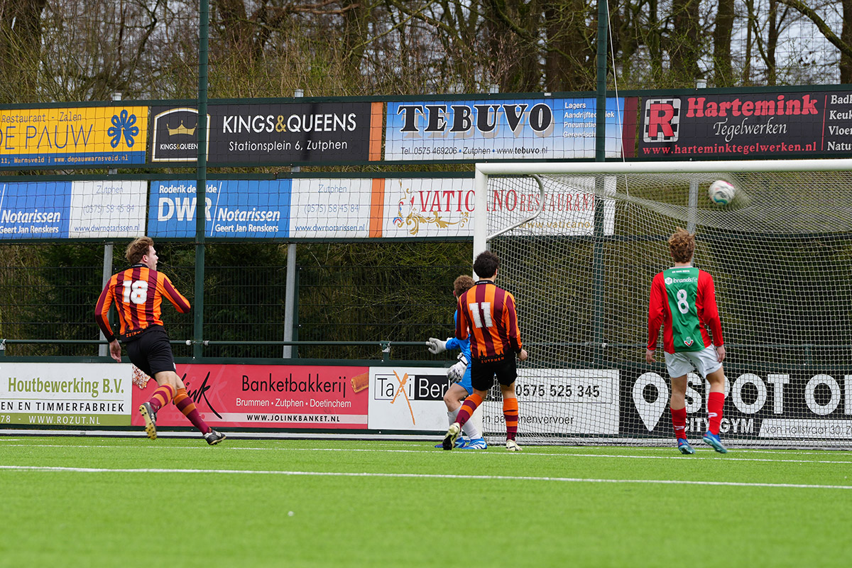 FC Zutphen JO19-1 speelde vanmiddag een sterke wedstrijd tegen Bon Boys JO19-1. De ploeg van Boy Elskamp en Michalis Spiridakis domineerde de wedstrijd, liet vloeiend lopende aanvallen zien en scoorde er flink op los. Voor eigen publiek werd het 6-2, mede dankzij een hattrick van Julius Roters.