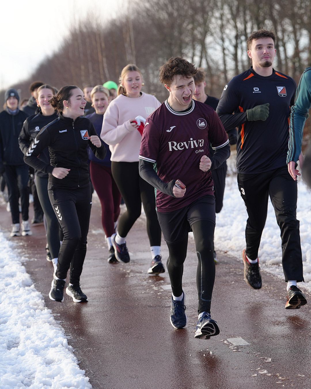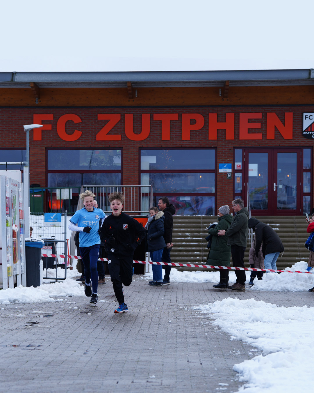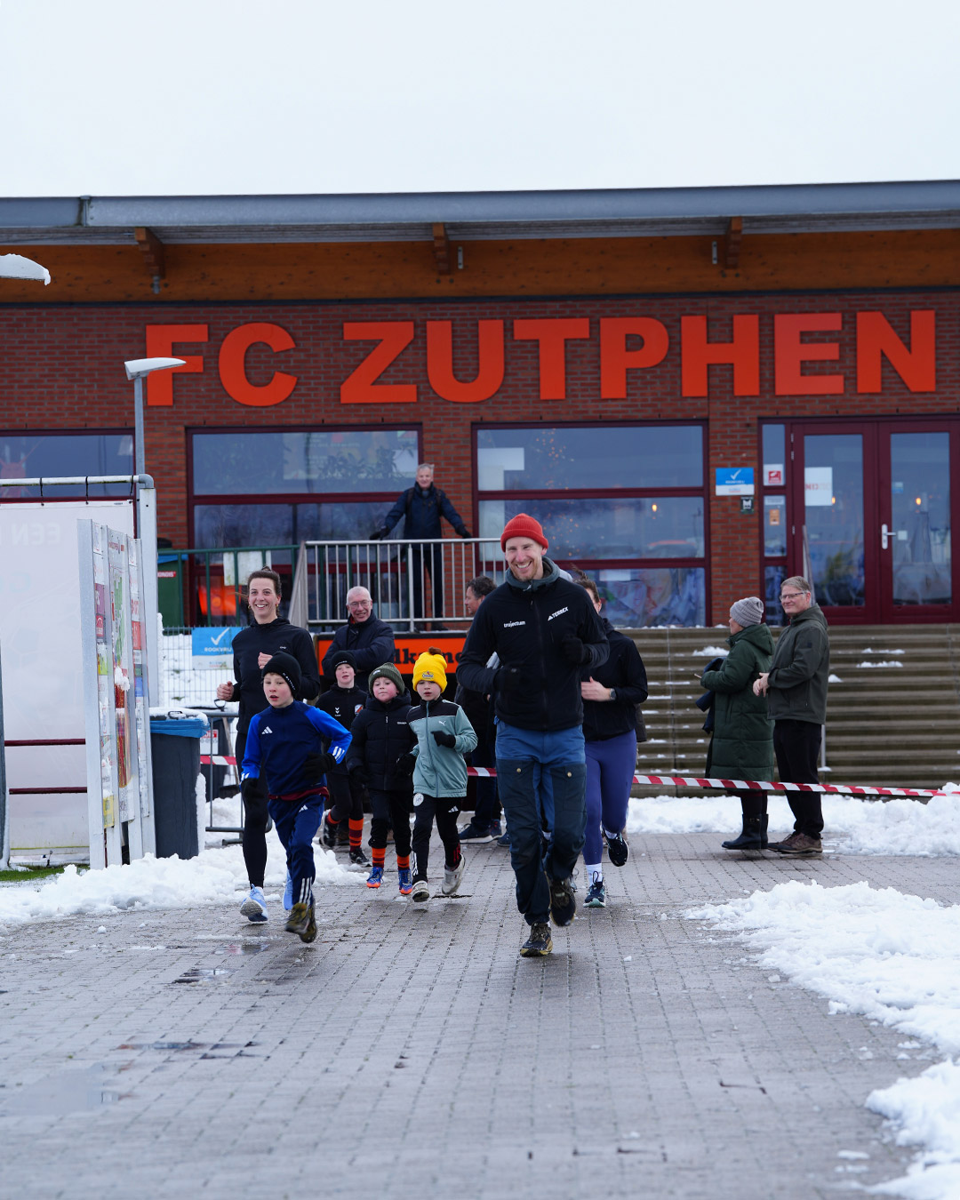 Ongeveer 350 deelnemers, verdeeld over 3 afstandsgroepen, liepen zaterdagmiddag de Nieuwjaarsloop bij FC Zutphen. Het was koud en er lag een flink pak sneeuw. Maar dat deerde de deelnemers niet. Zij liepen zich lekker warm en genoten na afloop van heerlijke snert of een broodje worst. Geweldig gelopen allemaal! Dankjewel Larissa (en team) voor de organisatie en Ronnie voor de muzikale en verbale omlijsting.
