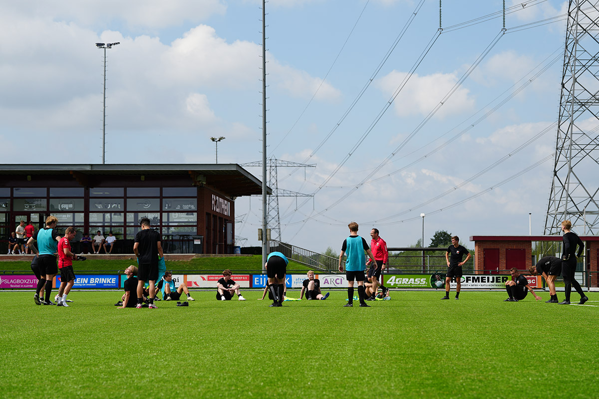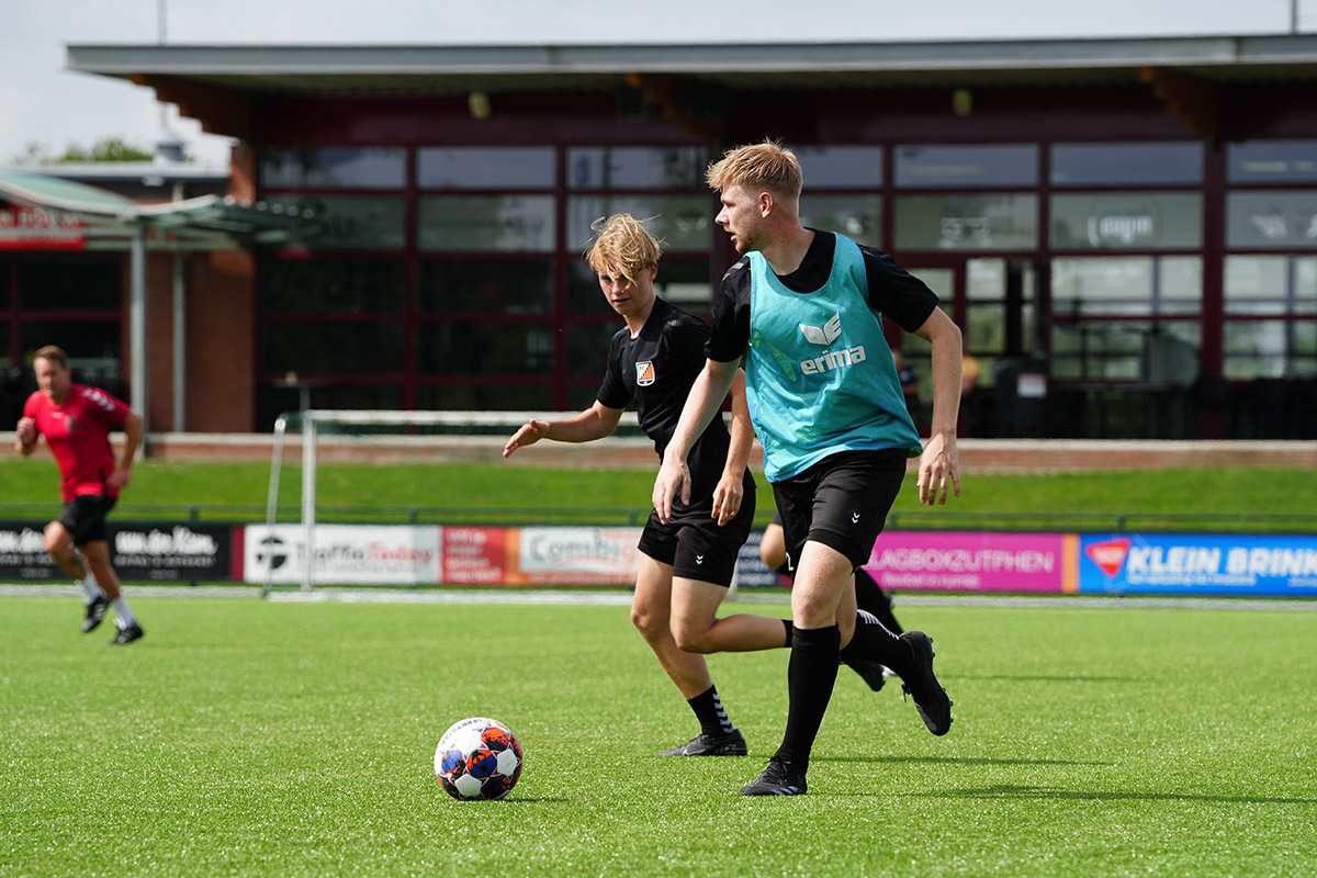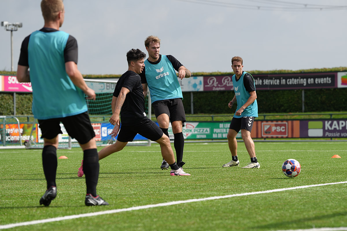Vanmorgen stond de eerste training van de voorbereiding op het nieuwe voetbalseizoen op het programma. In de zomerse warmte werkten de 1e en en 2e selectie van FC Zutphen een afwisselende en intensieve training af. Beide groepen waren nog niet compleet, omdat een aantal spelers nog geniet van hun vakantie.