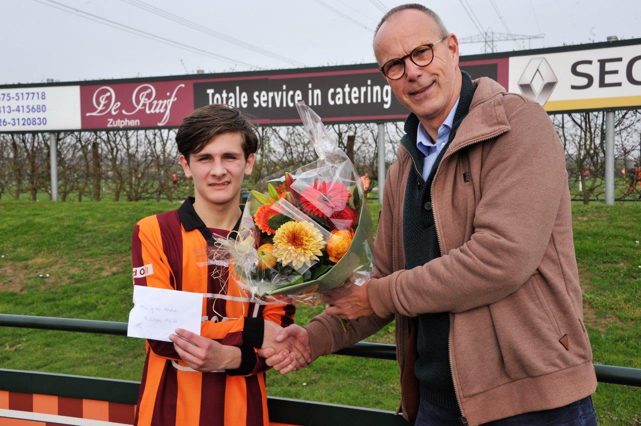 Na afloop van de met 4-2 gewonnen wedstrijd FC Zutphen – ASC ’62 werd Lars Huber benoemd tot Man off the Match. Hij scoorde het belangrijke eerste doelpunt na een vloeiende aanval over links.