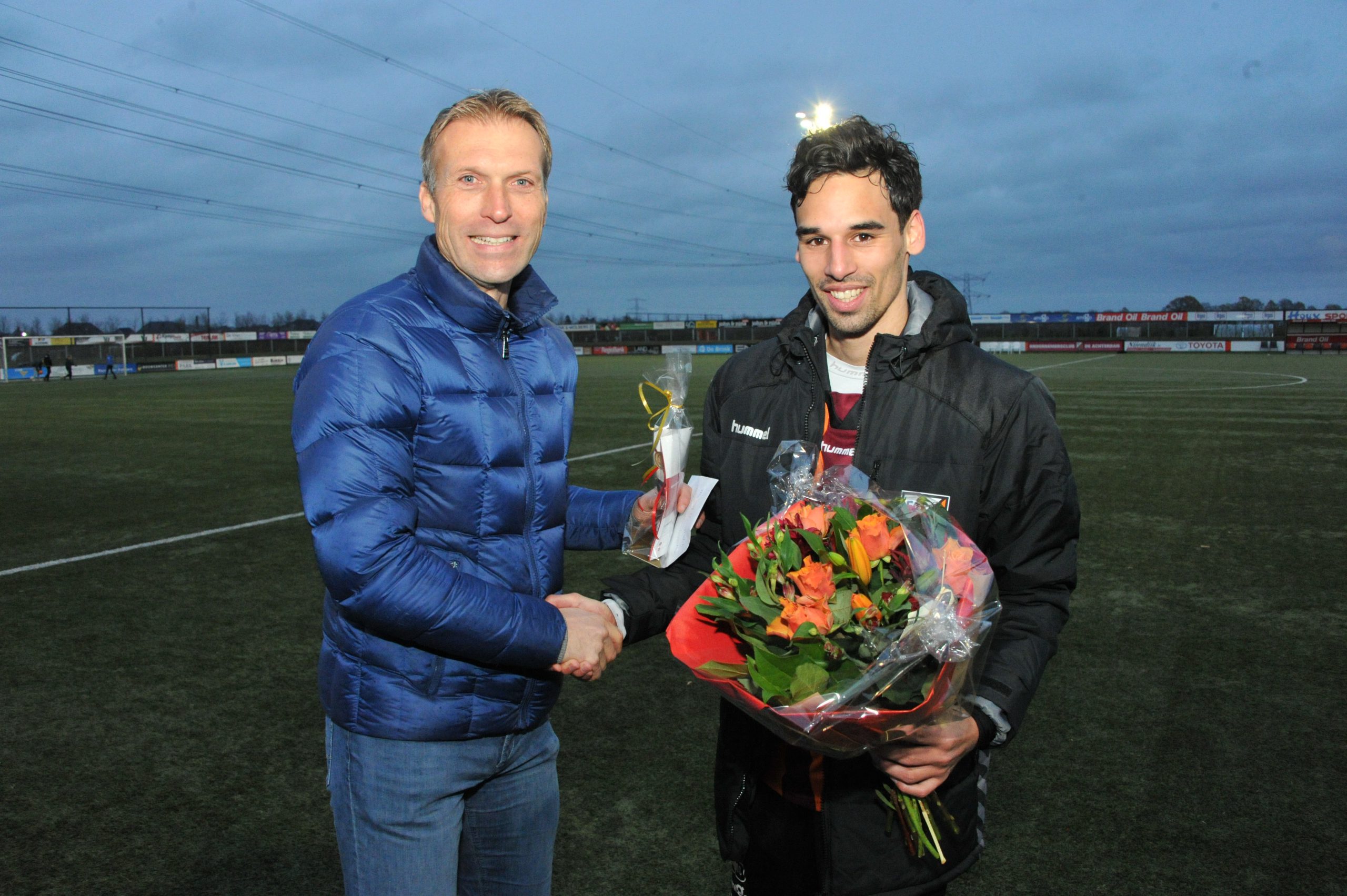 Uit handen van Hans Nijland namens Sponsor van de Week Eggink Maalderink Garantiemakelaars ontving Jelle een bloemenbon Van Greenshop Liesbeth en een aantal consumptiebonnen van de PSC.