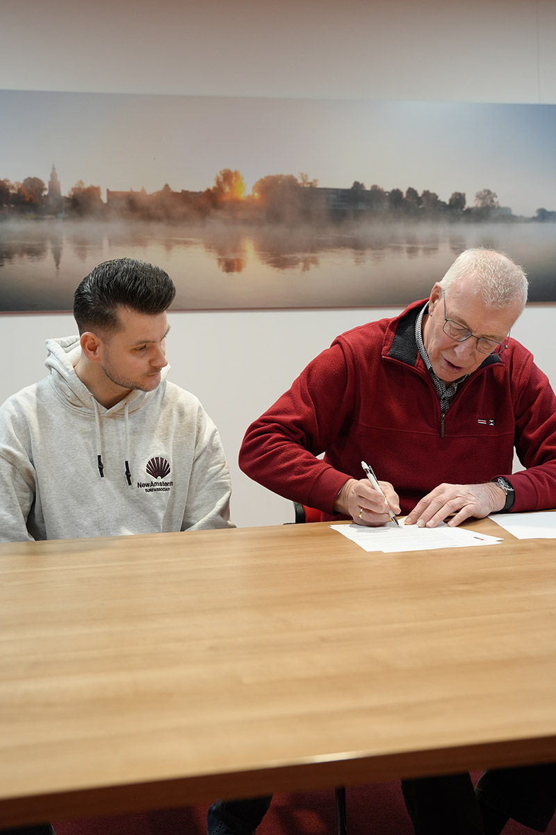 Woensdagavond 29 januari tekende Bas Peperkamp het contract dat hem voor het komende voetbalseizoen als hoofdtrainer aan FC Zutphen verbindt. Samen met FC Zutphen voorzitter Gerjan Nijland voorzag Bas de documenten van een paraaf en handtekening.