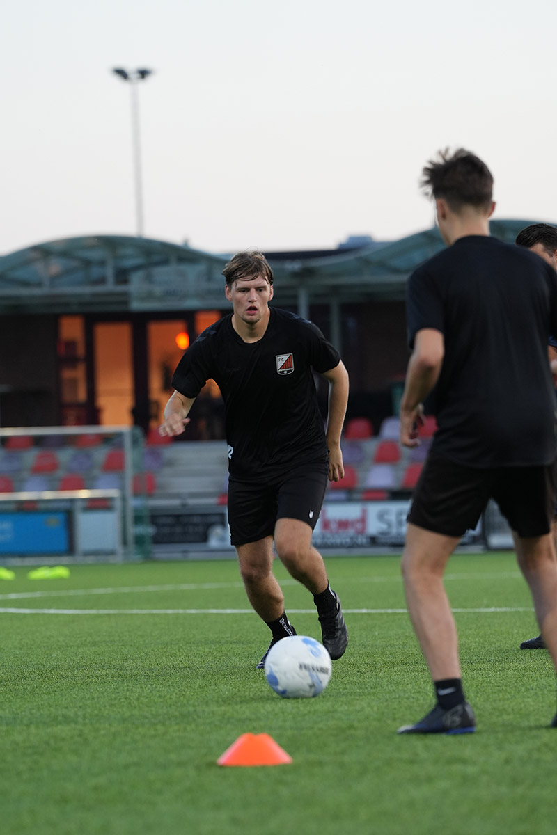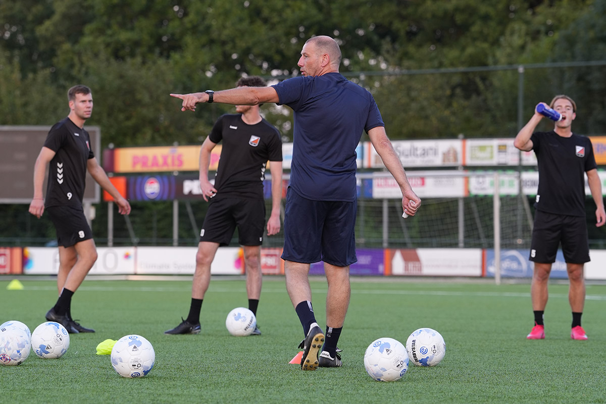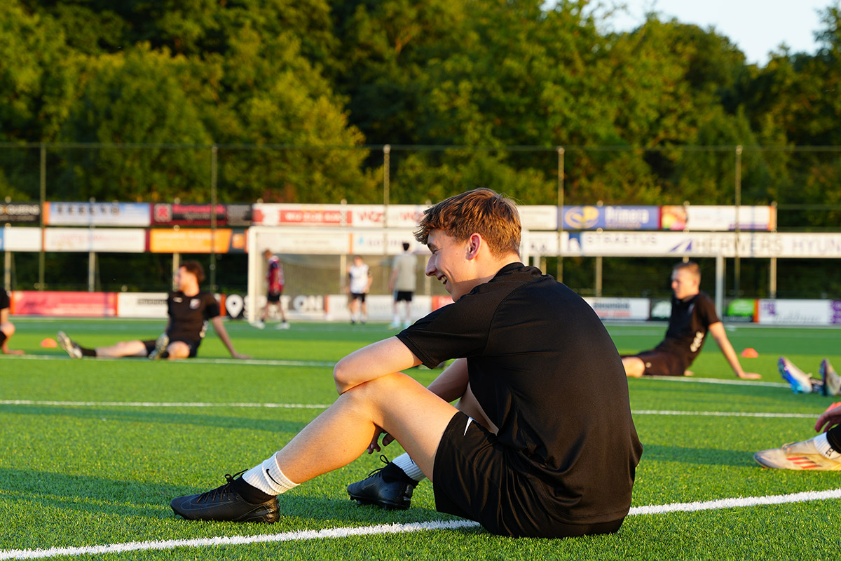 Hoofdtrainer Bas Peperkamp legde veel focus op nauwkeurigheid. ‘Liever iets langzamer en zuiver’, galmde het regelmatig over het trainingsveld. De training bestond uit diverse pass-oefeningen, positiespelletjes en een afsluitende partijvorm.