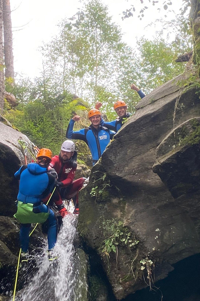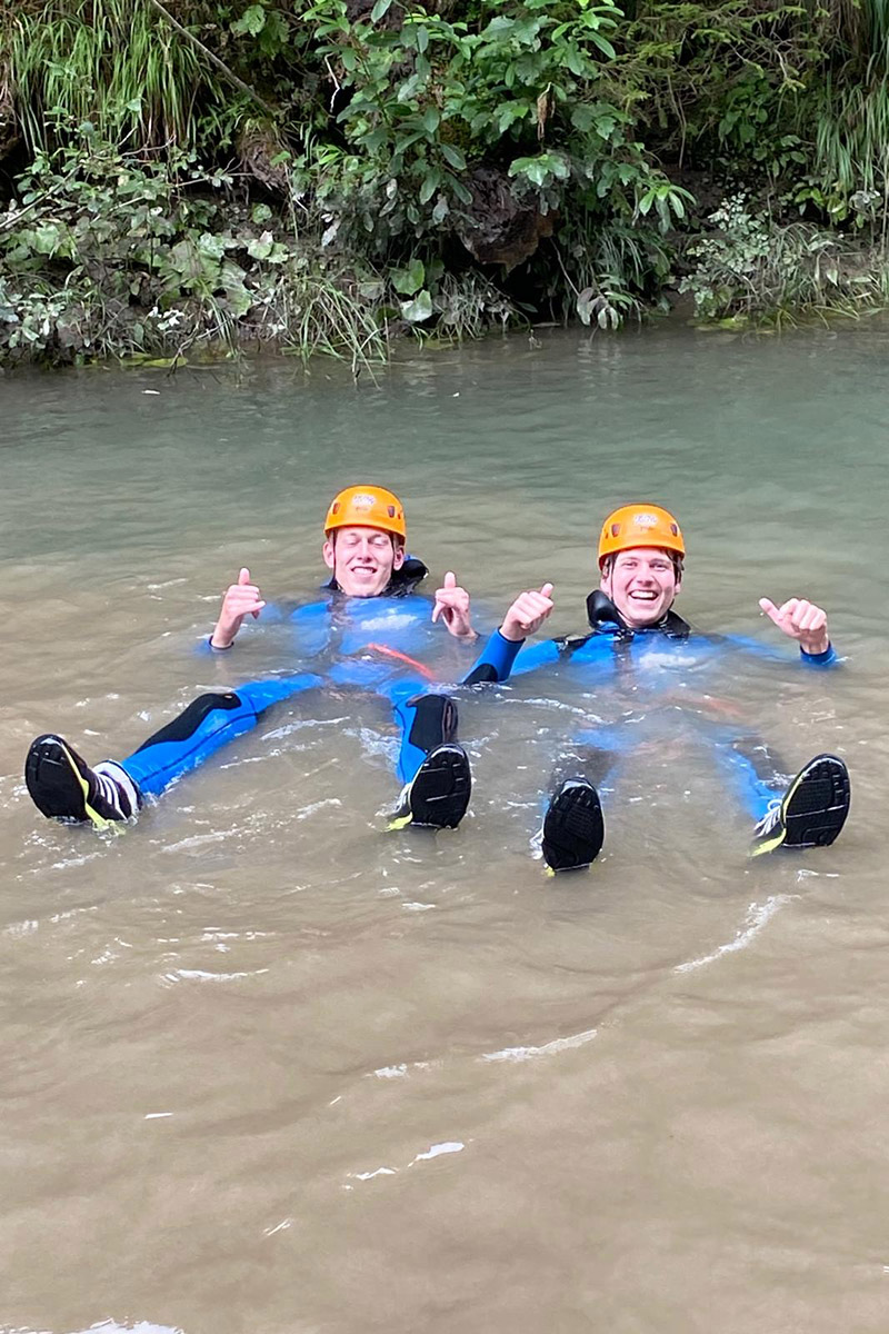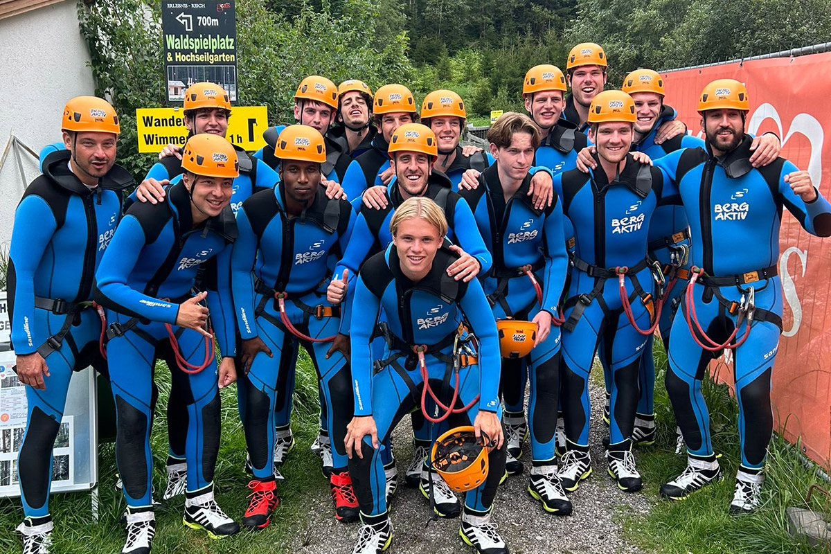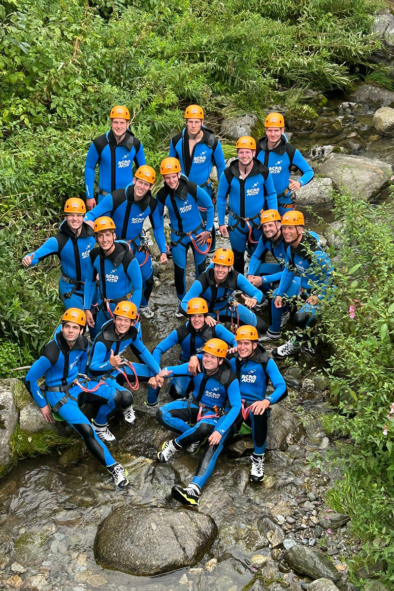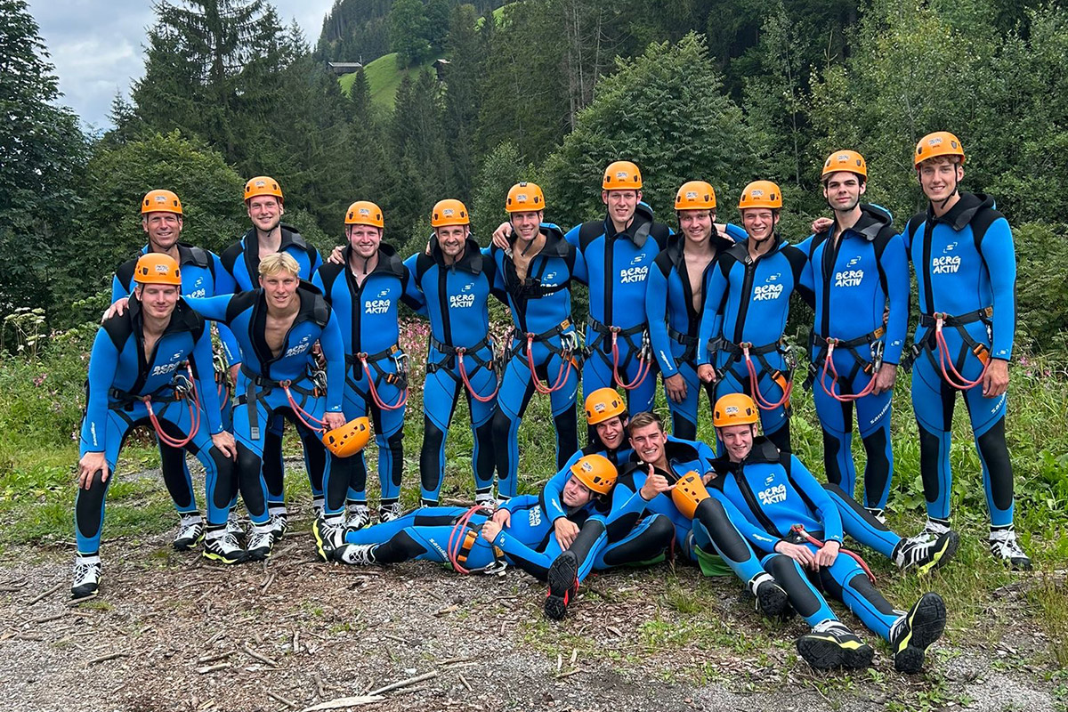 Het canyoning in Gerlos vormde voor de beide groepen spelers een prachtige uitdaging. De tocht door de bergen, hellingen en bergbeken gebeurde onder deskundige begeleiding. Aleck Boeijink en Jesse de Vries maakten prachtige foto’s en filmpjes van de diverse onderdelen. Bij de 2e groep regende het ook nog eens flink, dus dat maakte de uitdaging alleen maar groter.