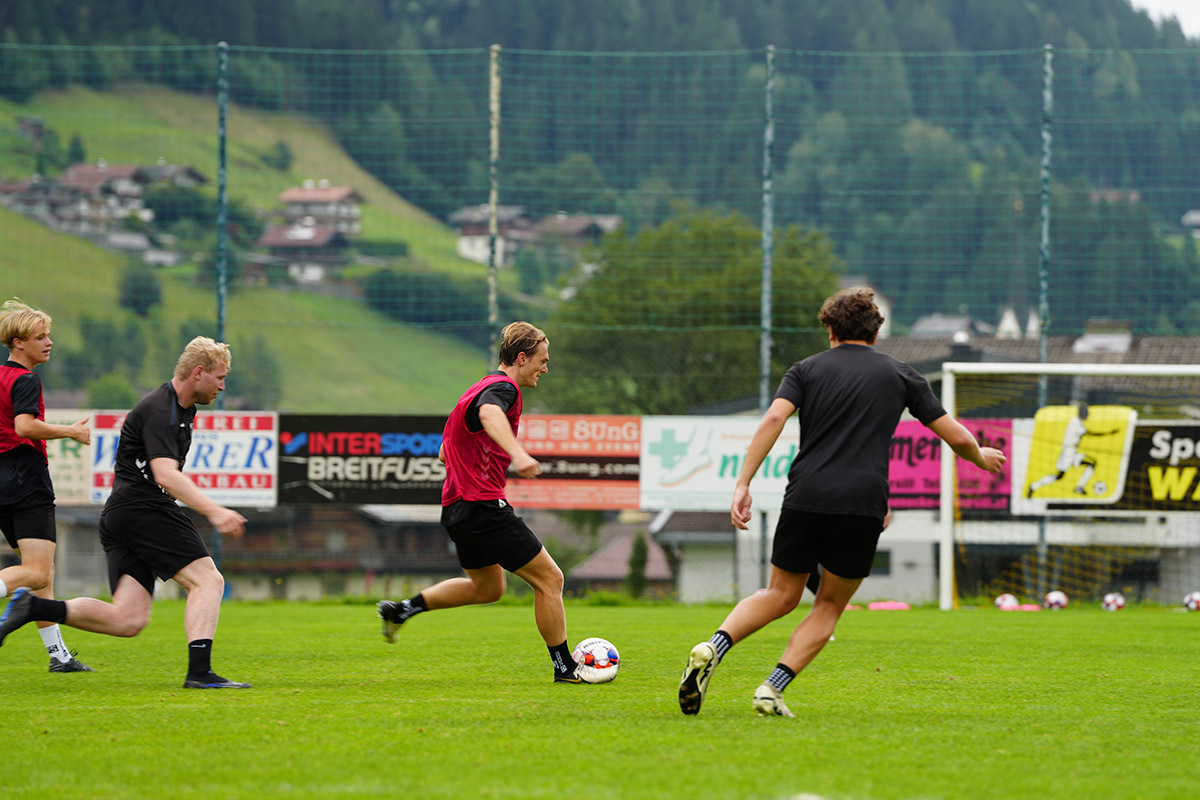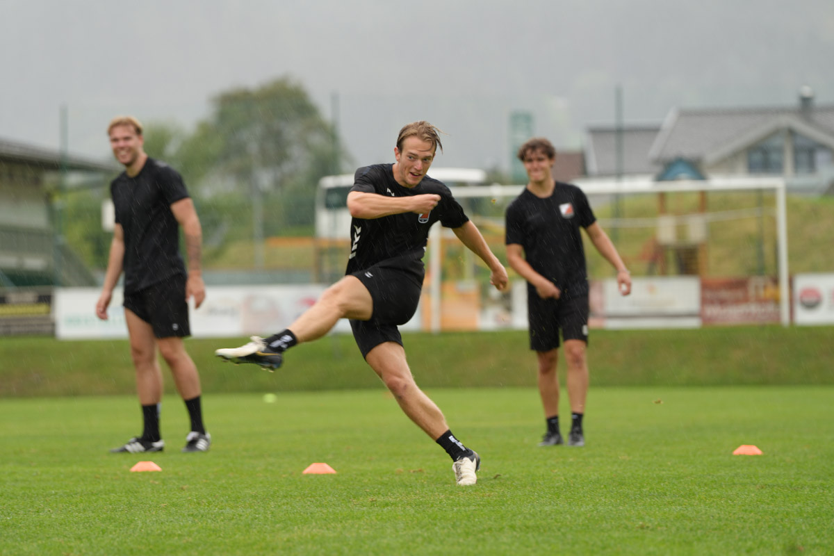 Om 19.00 uur gingen we naar beneden naar Hotel Post in Krimml. Daar werd genoten van de warme maaltijd met aansluitend de quiz: petje op en petje af. Samen met de supporters werd het een heel gezellige avond, die onder leiding stond van trainer/quizmaster Donovan Tegelaar. Er werden 4 rondes gespeeld, en er was heel veel enthousiasme onderling. Zo kwam er een einde aan een regenachtige, maar ontspannen zondag. Vanaf maandag is het afgelopen met de ontspanning en staat de gehele dag in het teken van het voetbal.