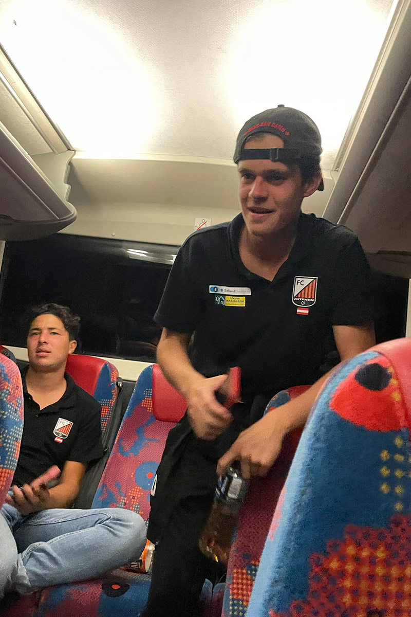 De middag werd rustig aan gedaan en de warme maaltijd in Filzstein Alm werd om 16.30 uur genuttigd. De spaghetti Bolognese smaakte uitstekend. Een uur later vertrok de bus naar Anschau. Er reisden ook diverse supporters mee, wat tot gevolg had dat er weinig plaatsen vrij waren. En ook Steven van Beek, voorzitter van SC Wald, was van de partij. Chris Nauta voerde in de bus het woord namens de supporters, en stak de jongens een bemoedigend hart onder de riem.