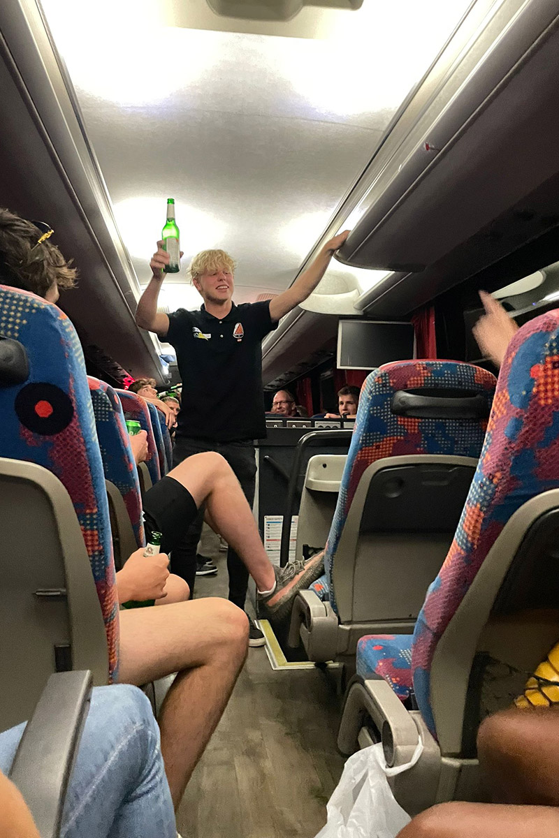 FC Zutphen oogde topfit en speelt dinsdagmiddag in Mittelseel haar derde wedstrijd. De overwinning werd op de terugweg uitgebreid gevierd. De spelers toonden aan niet alleen over voetbalkwaliteiten, maar ook over individuele zangkwaliteiten te beschikken. En ook enkele supporters deden daaraan volop mee. De sfeer zat er dan ook uitstekend in. Het is een stuk team building waar geen enkele trainer tegenop kan.
