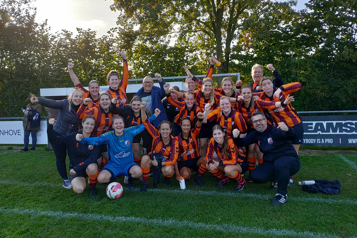Na 25minuten Vanya gebracht voor Maureen en na 20minuten Michelle voor Lisette. Een diepe bal op Annika die 1 op 1 met de keepster kwam en bam de 1-1 was een feit. Een vrije trap recht voor de goal net buiten de zestien meter werd door Iris fraai om de muur gekruld maar helaas net over. Het spel werd beter en beter en de snelle spitsen kwamen er nauwelijks meer door. Tegen het einde van de 1e helft moest Lise het veld verlaten en kwam Sofie voor haar in de plaats. Jaq nam de vlag over. Vrije trap een beetje links van de goal buiten de zestien meter. Krul, vaart en raak… de verdiende 2-1 van Sofie. Meteen na de aftrap was het rustsignaal.