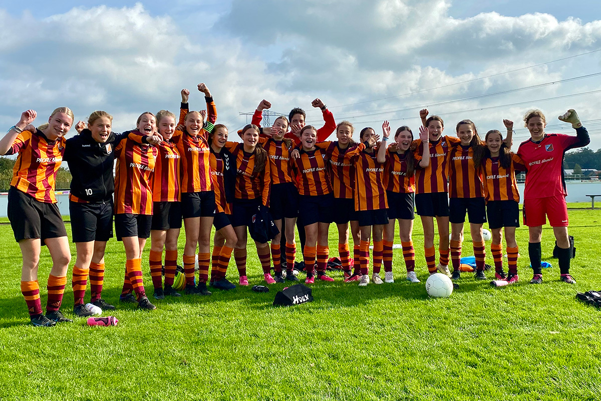 Deze wedstrijd kunnen we plaatsen onder het kopje “een wedstrijd om nooit te vergeten”. Derby’s zijn altijd speciaal, omdat je tegen veel bekenden speelt. Het haalt het beste in de speelsters naar boven en ze bleven elkaar pushen om het tempo hoog te houden. Wat een genot was het om naar deze wedstrijd te kijken, maar het heeft de trainer al een aantal grijze haren opgeleverd. Het was het wel allemaal waard, want je blijft ongeslagen. 1e eindigen in de 1e fase kun je bijna niet meer mislopen. Zaak is om volgende week de klus definitief te klaren tegen Oeken. De meiden zullen weer tot op het bot gemotiveerd zijn om de wedstrijd winnend af te sluiten. De trainer.