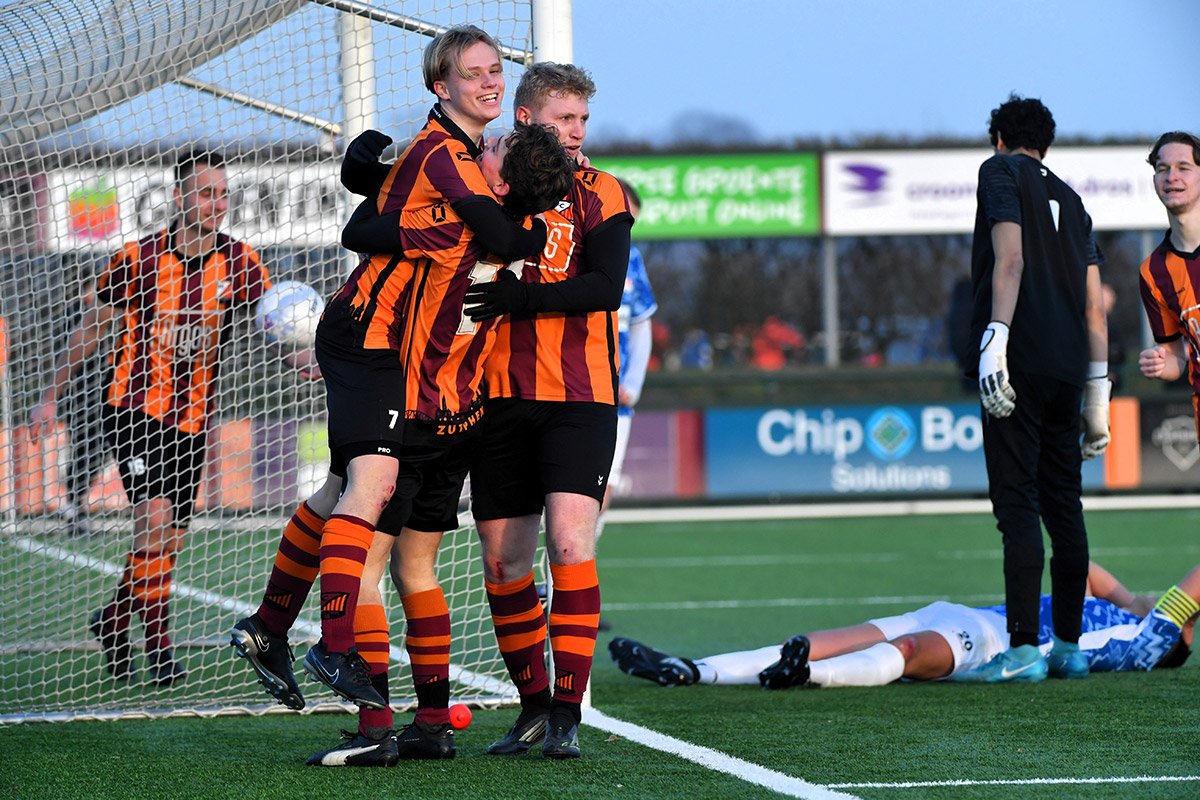 FC Zutphen speelde eerst een stroeve en daarna een soepele helft in de thuiswedstrijd tegen Rigtersbleek. Voor rust kwam de ploeg wat moeizaam op gang. Na rust liep het een stuk beter. Een eigen doelpunt, ingeleid door een prachtige actie van Milan Klaver, brak de ban. Vlak na de 1-0 maakte Milan Klaver op aangeven van Jeroen van Gerven de 2-0. Rik Vlutters punterde bij zijn eerste basisplaats na zijn rentree raak voor de 3-0. Rigtersbleek had een strafschop nodig om doelman Siem Isselman te passeren, het werd 3-1. Omdat de wedstrijd Oranje Nassau – SV Losser flink wat later eindigde was FC Zutphen ruim 20 minuten in onzekerheid over de eindstand van de 1e periode. Toen bleek dat het in Almelo gelijk was gebleven kreeg FC Zutphen wat het graag wilde: de 1e periode!