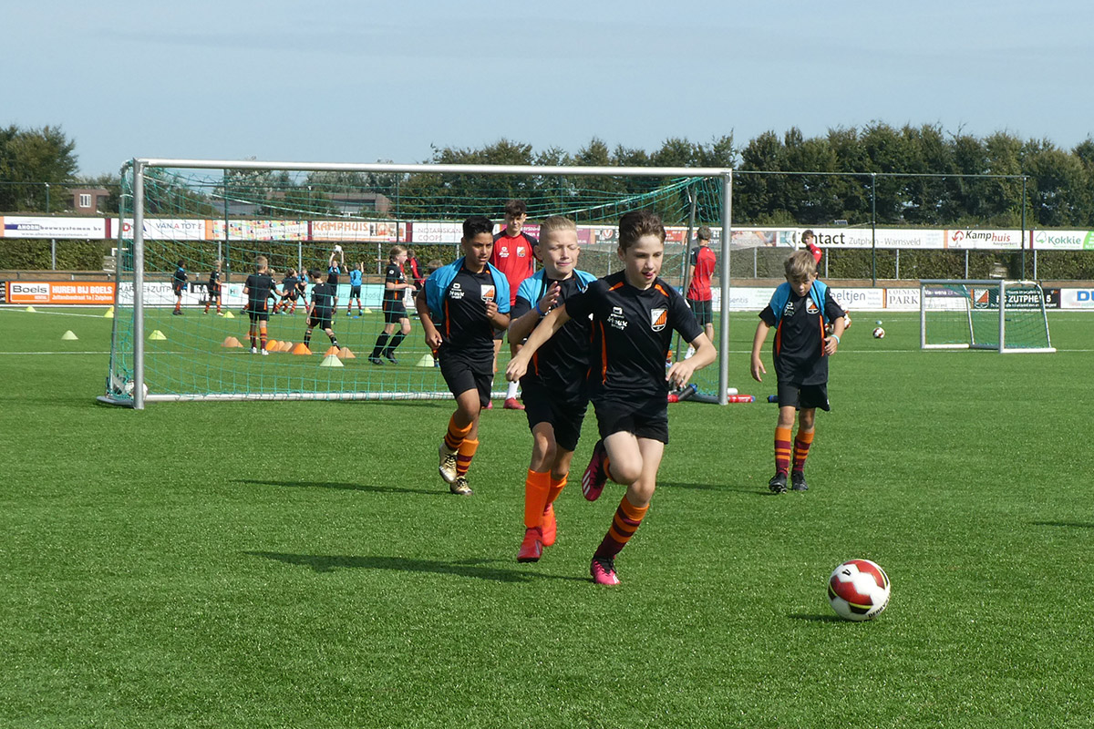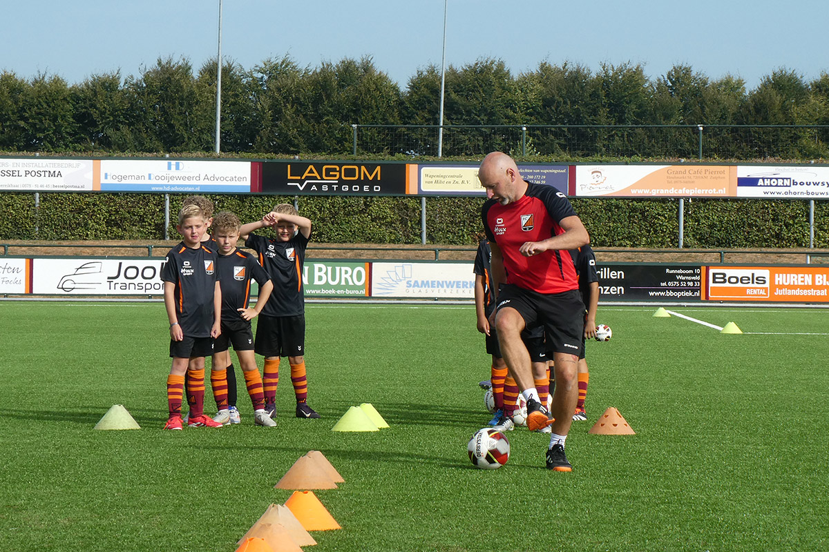 Ook op dag 2 van de FC Zutphen Voetbaldriedaagse werd er door de 128 deelnemers heerlijk gevoetbald. En van al die inspanningen kreeg je het best warm, want het was ook nog eens prachtig weer. De trainers zorgden onder leiding van Gertjan Oogjes weer voor leuke oefeningen!