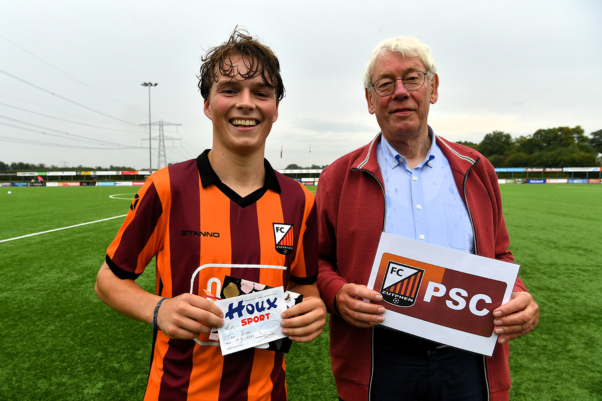 Jeroen van Gerven werd in de slotfase van het duel tussen FC Zutphen en SV Losser benoemd tot Man van de wedstrijd. De jonge middenvelder ontving na afloop van de wedstrijd de bijbehorende presentjes uit handen van bestuurslid Aloys Rouweler.