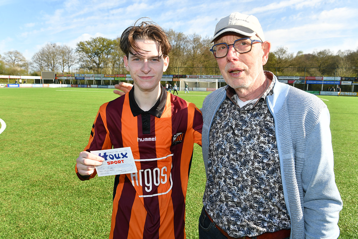 Uit handen van Chris Nauta ontving Mido felicitaties en de cadeaus die horen bij zijn benoeming tot man van de wedstrijd. Mido, van harte!
