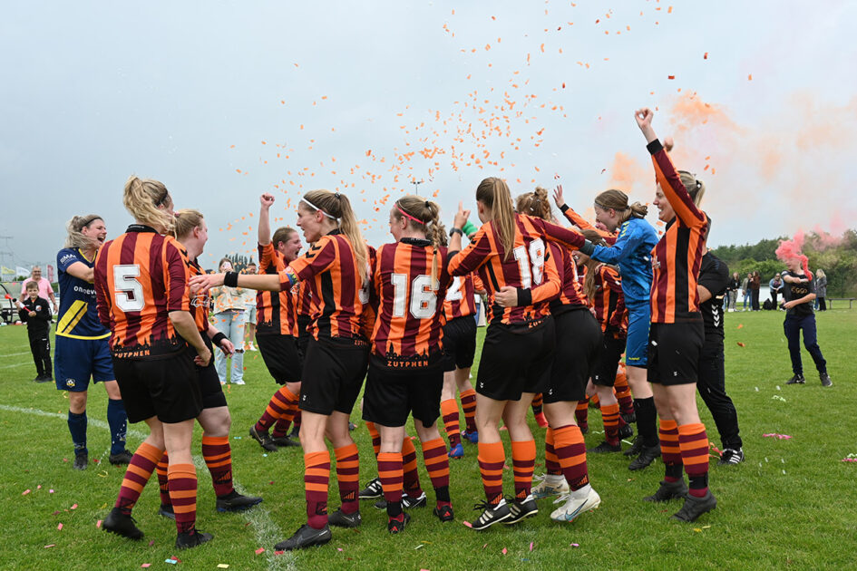FC Zutphen Vrouwen 2 is kampioen en liet daar zaterdag geen enkele misverstand over bestaan. In de thuiswedstrijd tegen ZZC ’20 werd er overtuigend met
