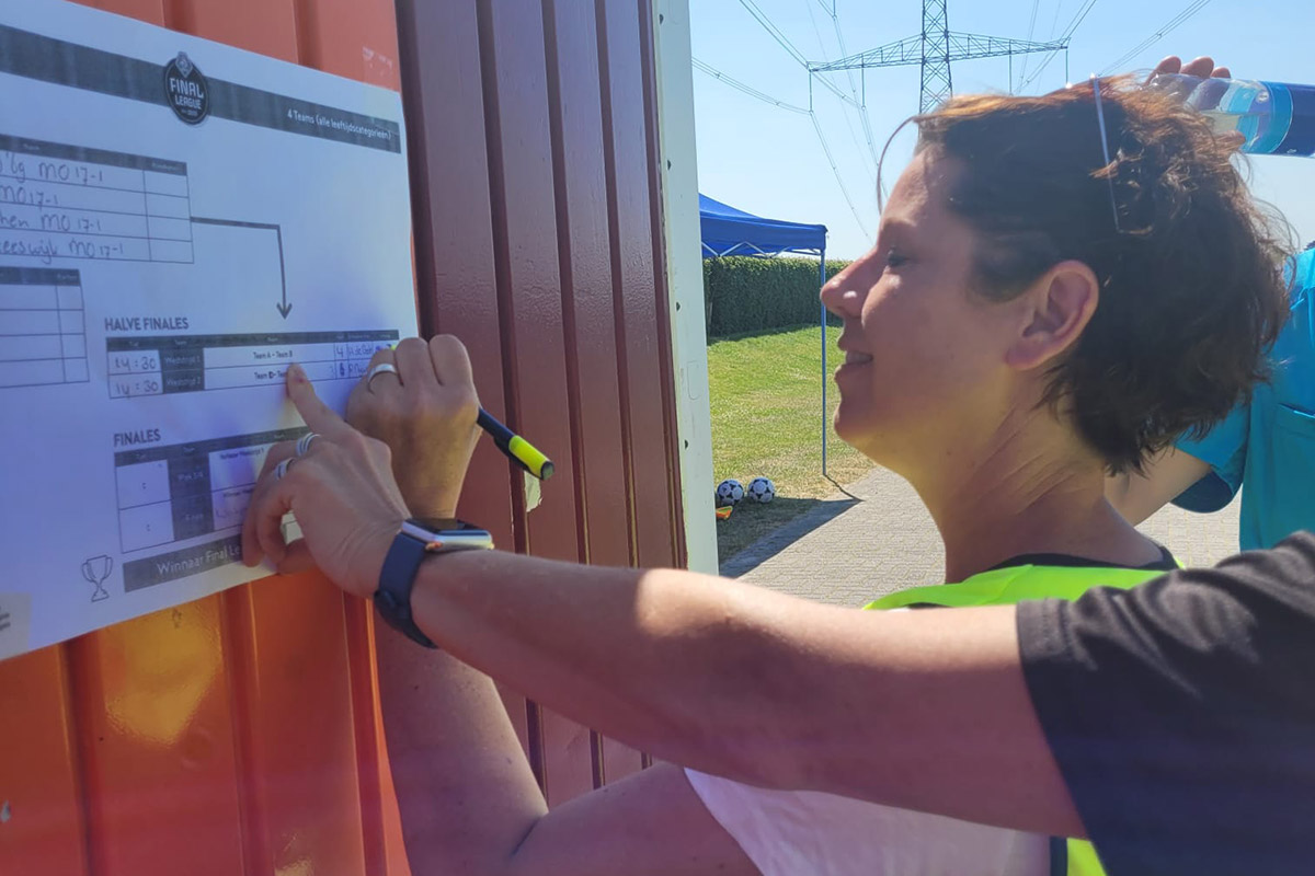 De wedstrijden en activiteiten bij FC Zutphen werden vakkundig gecoördineerd door Saskia den Hertog. Ze was er de afgelopen weken maar wat druk mee om alles voor te bereiden, om de 1e Final League bij FC Zutphen tot een succes te maken. Dankzij de steun en hulp van vrijwilligers is dat gelukt. Dat er best een aantal afmeldingen van clubs waren, was jammer maar mocht de pret uiteindelijk niet drukken. Met de aanwezige teams was er voetbalplezier genoeg!