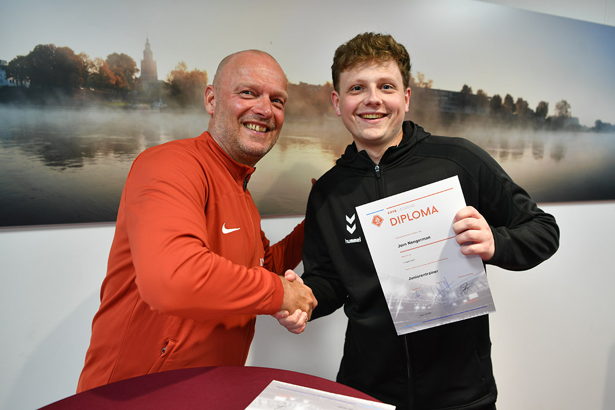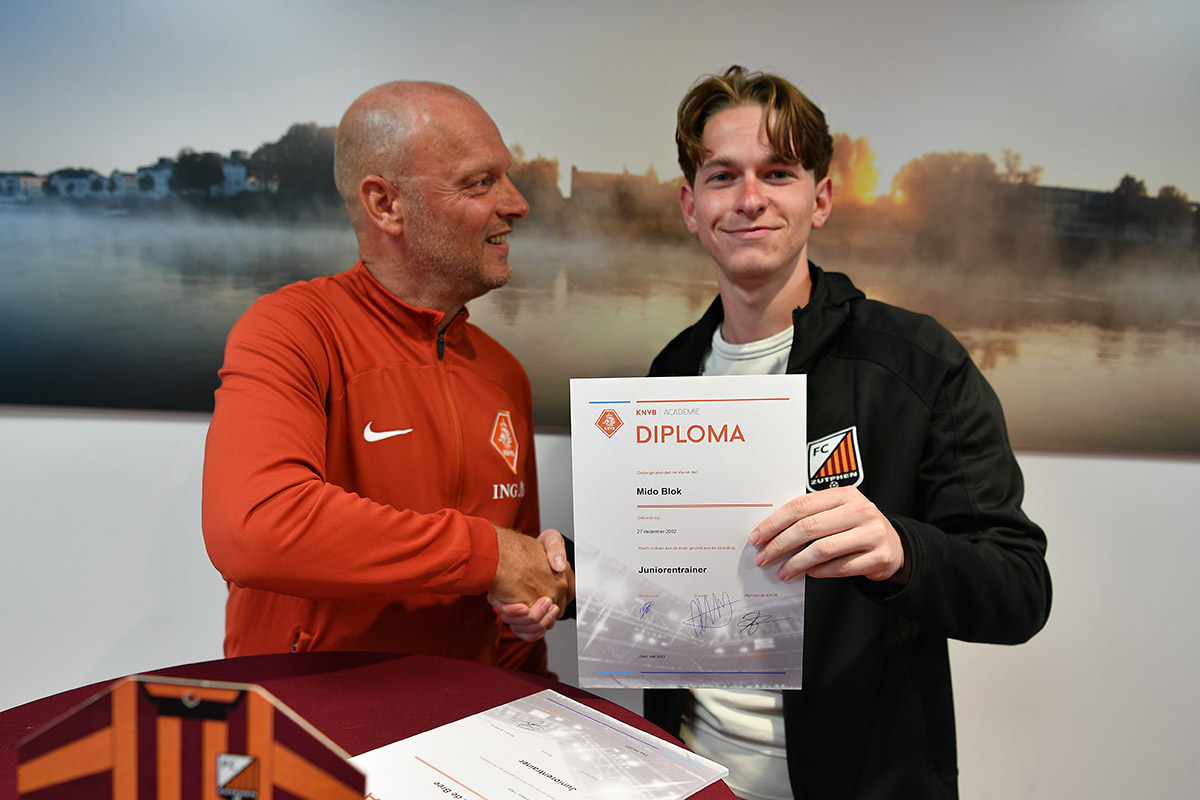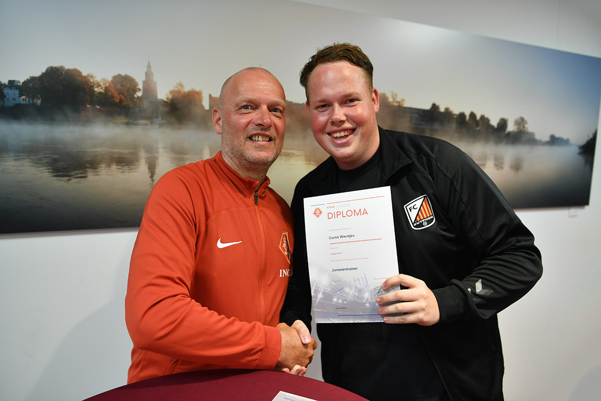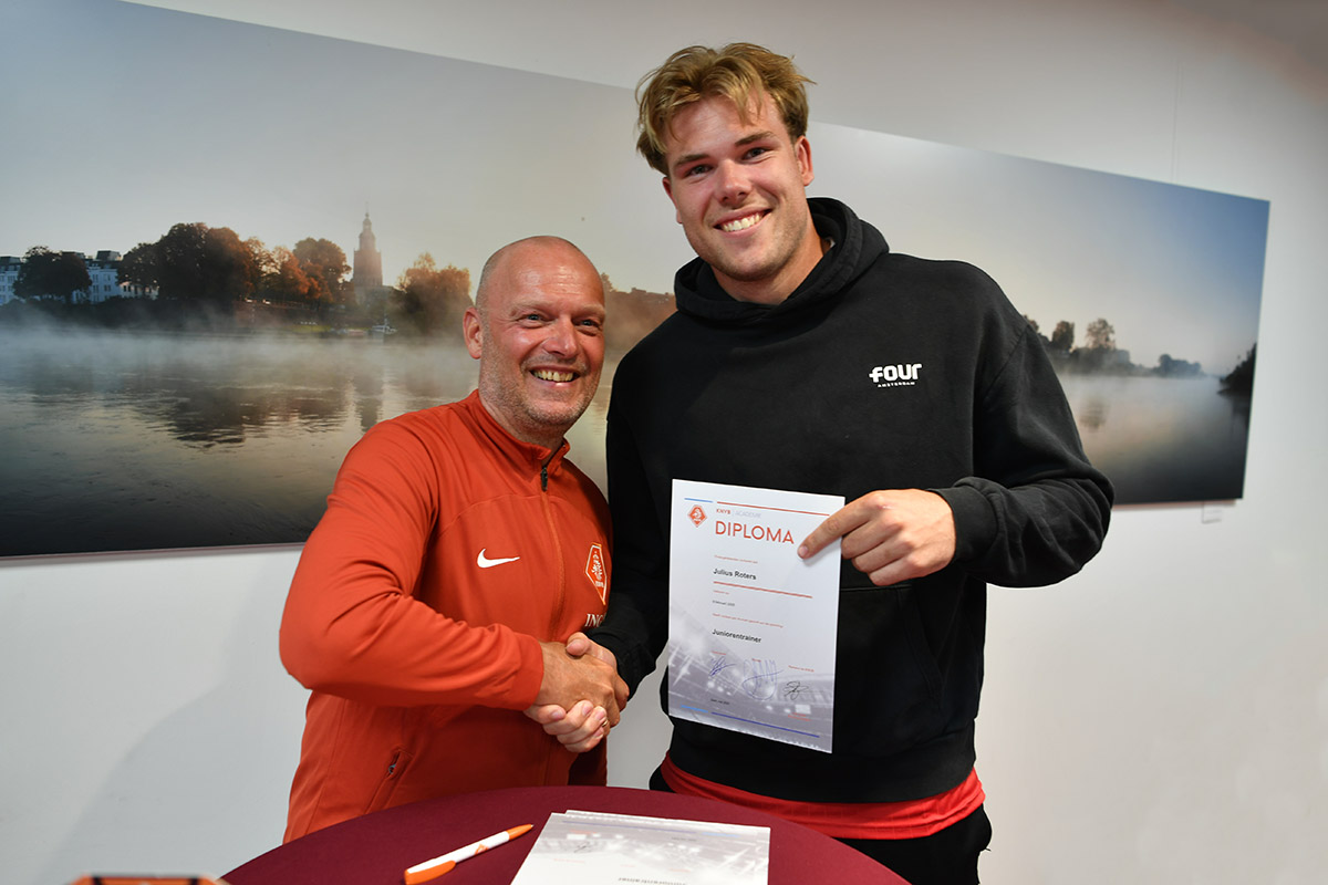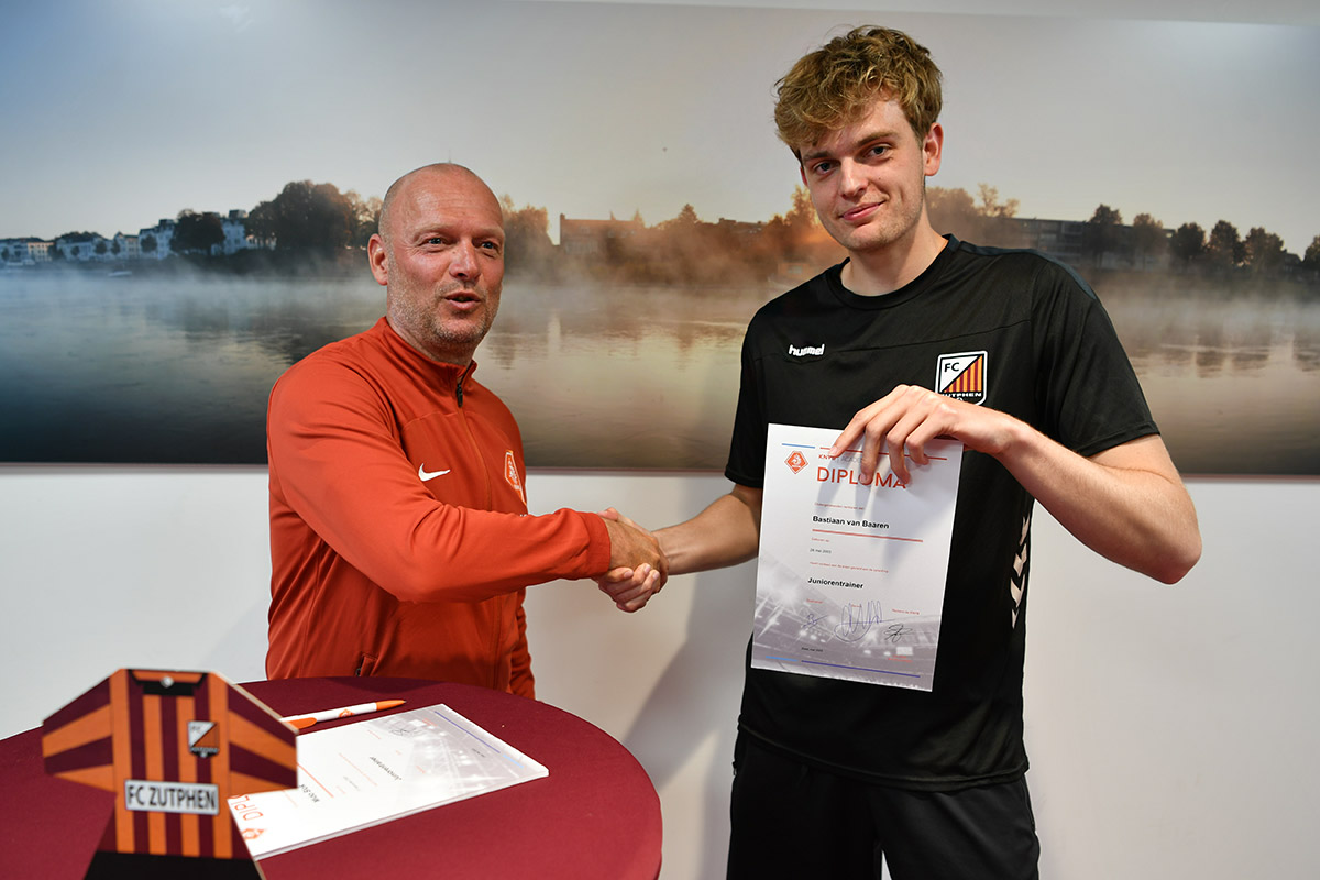 Jorn Nengerman, Bastiaan van Baaren, Corné Wientjes, Mido Blok en Julius Roters zijn geslaagd voor de cursus KNVB jeugdtrainer. Op woensdag 31 mei ontvingen de 5 jeugdtrainers van FC Zutphen hun certificaat uit handen van Arthur Isselman.