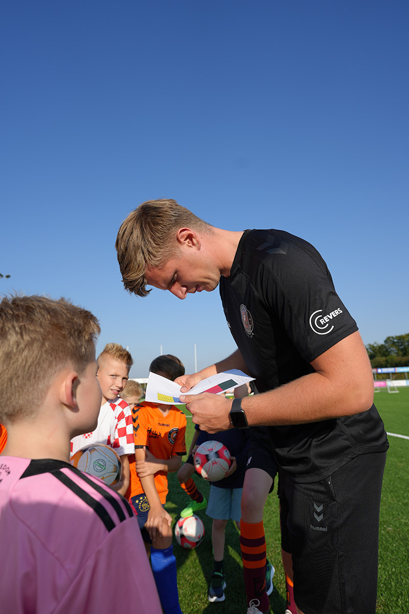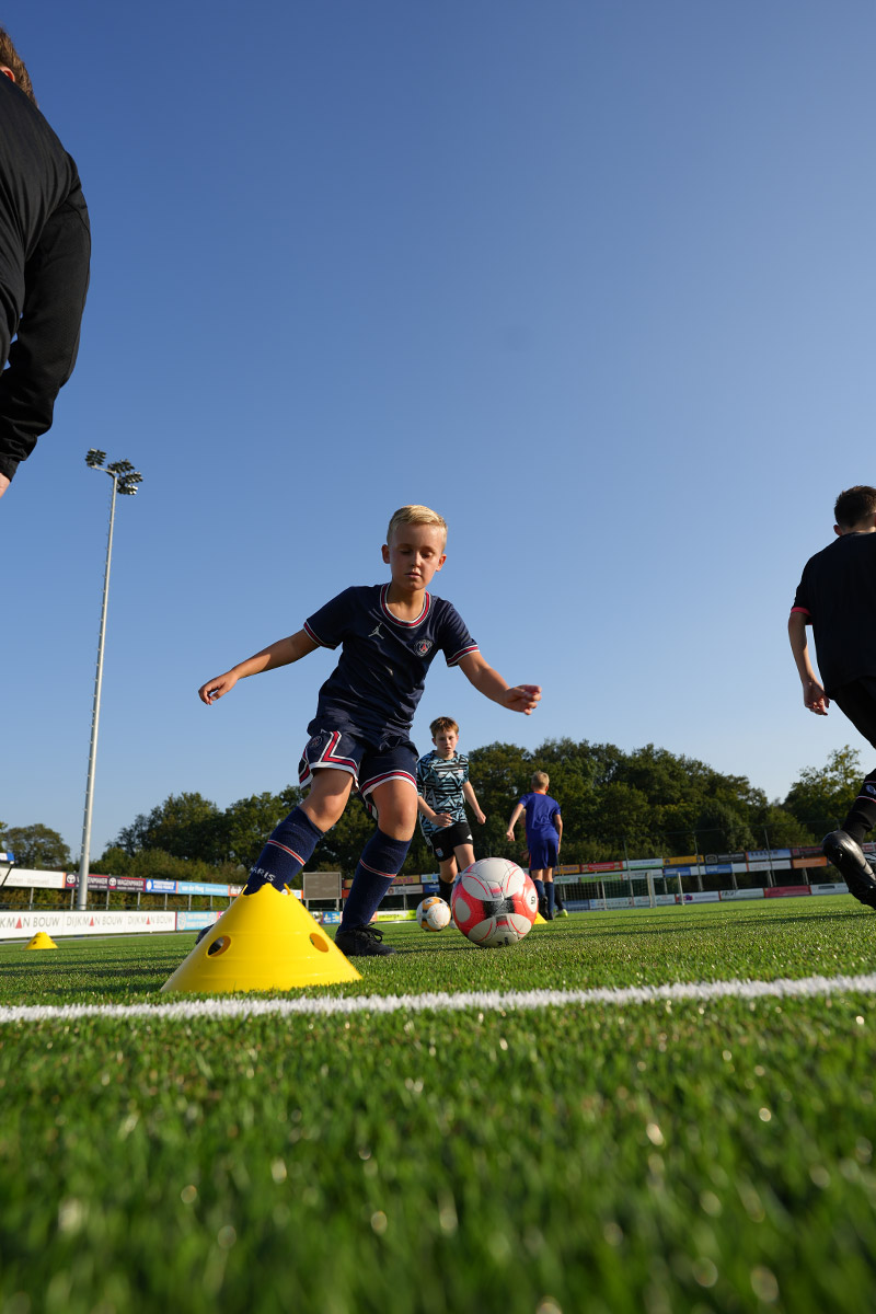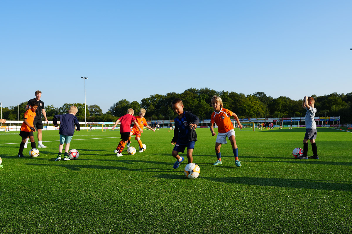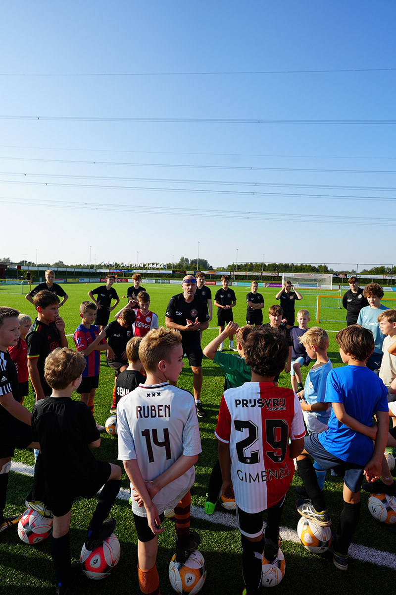 Na het welkom van Arthur gingen de keepers met Siem mee. En de voetballers met Menko. Er werden groepjes gemaakt. Bij elke oefening waren er andere trainers. Er werd heerlijk getraind, fanatiek geoefend en gelukkig werd er ook veel gelachen. Het plezier was van de gezichten van de kinderen af te lezen. En dat maakte de trainers trots. Sommigen deden er nog een tandje bovenop en moedigden de spelers aan om alles te geven.