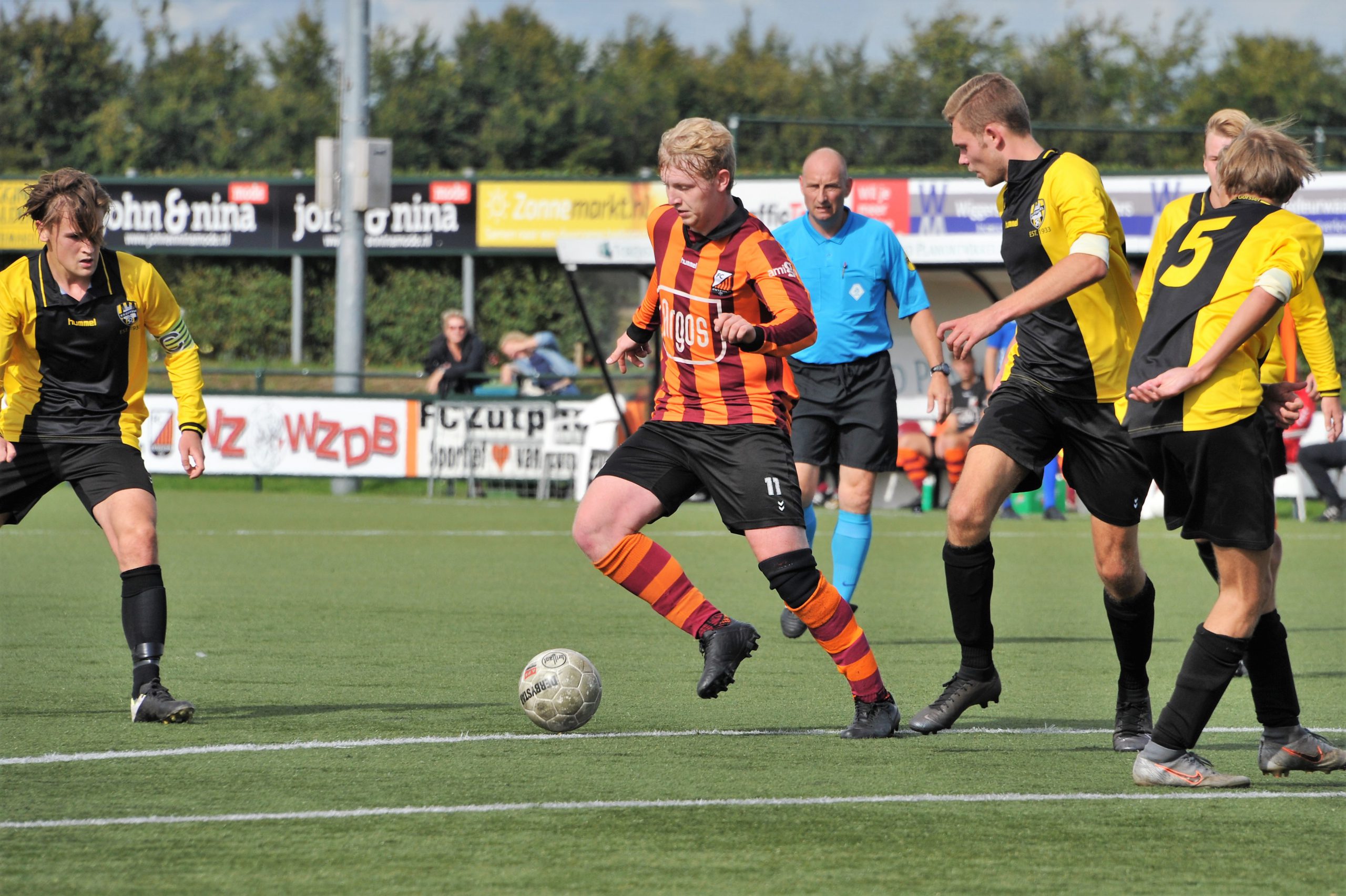 Koen Hulleman werd in de 16 meter onderuit gehaald maar Nathan Greven miste de toegekende strafschop. Doelman Kamphuis had de bal klemvast.