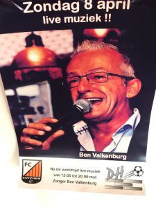 Zondag 8 april speelt FC Zutphen 1 (zon) tegen De Hoven 1 om 14.00u. Na afloop is zanger Ben Valkenburg aanwezig: live muziek van 15.00u