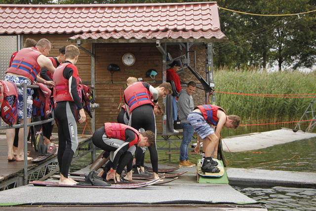 In Braamt kregen de jongens de lange latten ondergebonden om te gaan waterskiën. Na een onwennige start werd er volop genoten. Als een echte coach stond Robert aan de kant aanwijzingen te geven aan de jongens. Door blessures konden Sem en André niet meedoen.