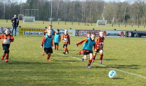 Zaterdagmorgen 09.40 ff inspeelballen halen bij Dick en dan met de presentielijst de mini’s ontvangen. Allemaal op tijd aanwezig en in colonne naar Gorssel met